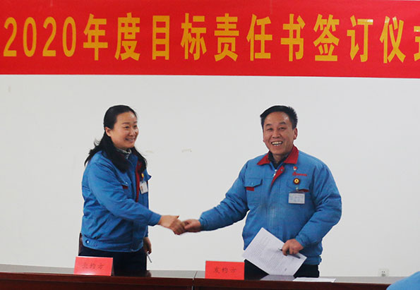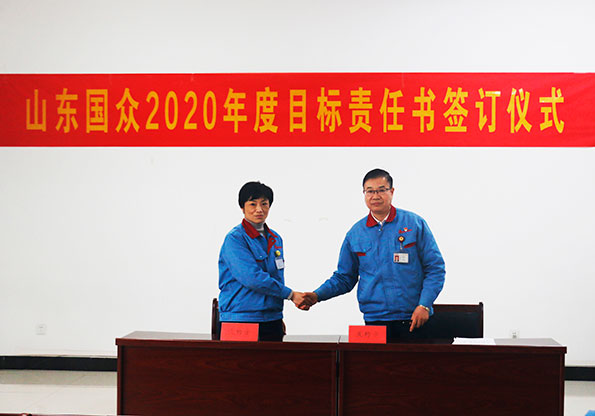 2020年1月11日下午,山東國眾在辦公樓一樓會議室舉行年度目標責任書簽訂儀式。公司領(lǐng)導、全體中層管理干部參加了此次簽字儀式。公司常務(wù)副總經(jīng)理劉文吉主持儀式。