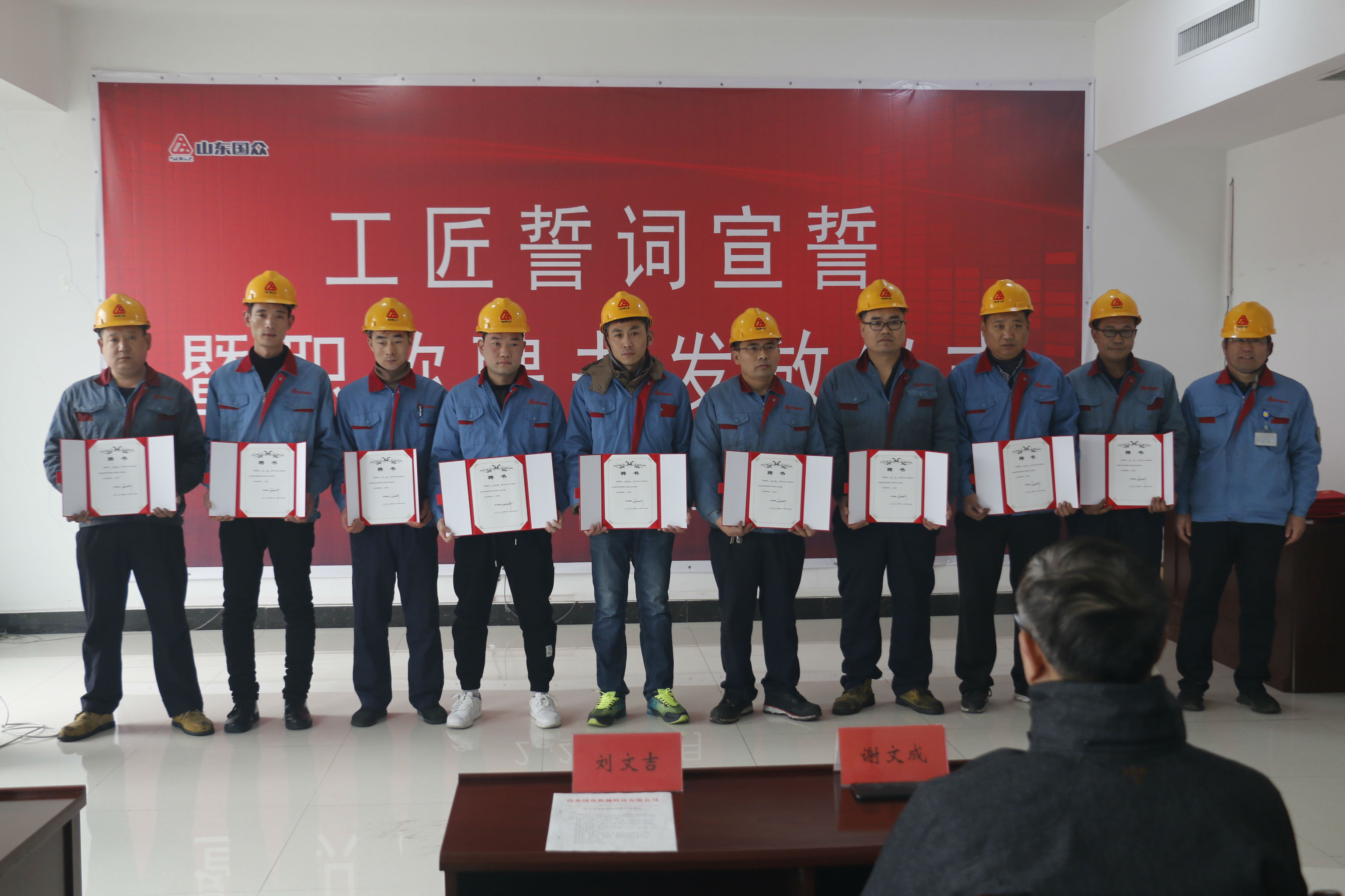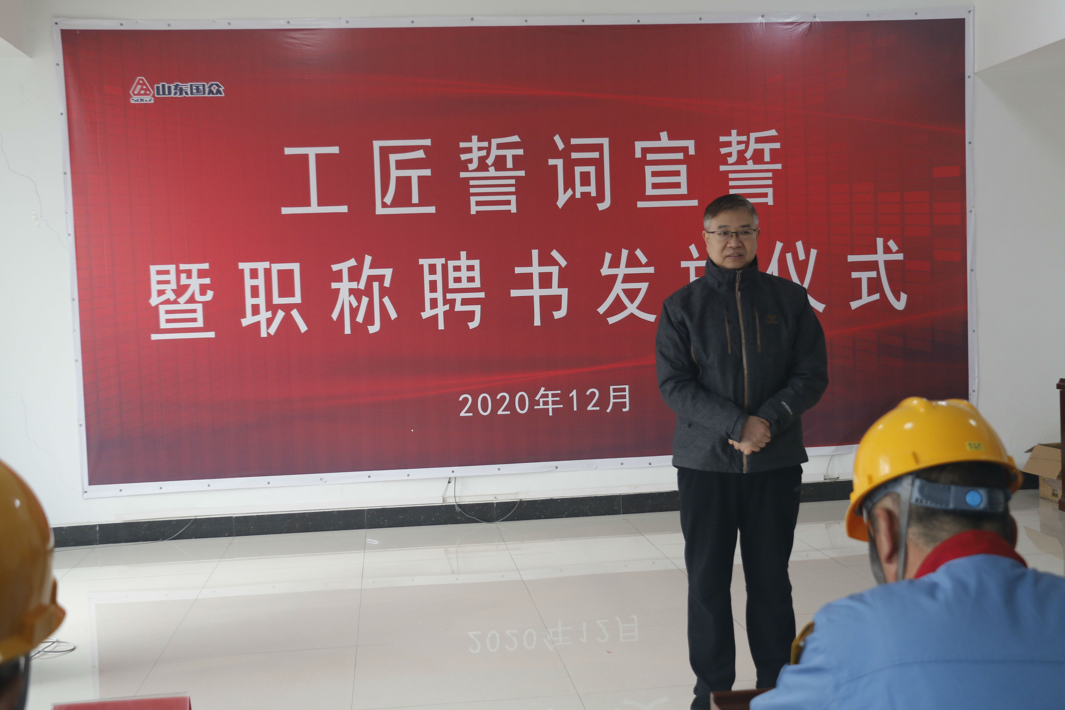謝文成總經(jīng)理講話指出:受聘的各位工匠都是山東國眾的財富和脊梁,看到這些優(yōu)秀員工,公司對未來的發(fā)展充滿了信心,并為有這么多優(yōu)秀的工匠而感到驕傲和自豪!